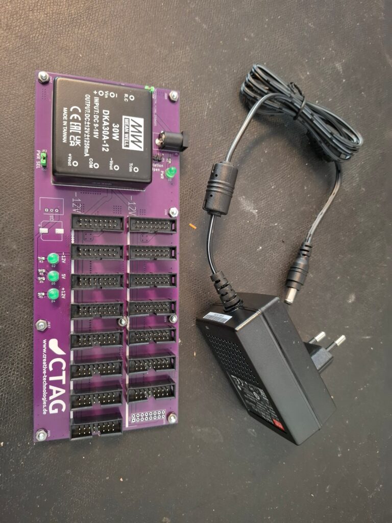 Es handelt sich um eine Stromversorgung mit 30W Netzteil, DC/DC-Wandler +12V zu +/- 12V (je 1,25A) und +5V (1A)
